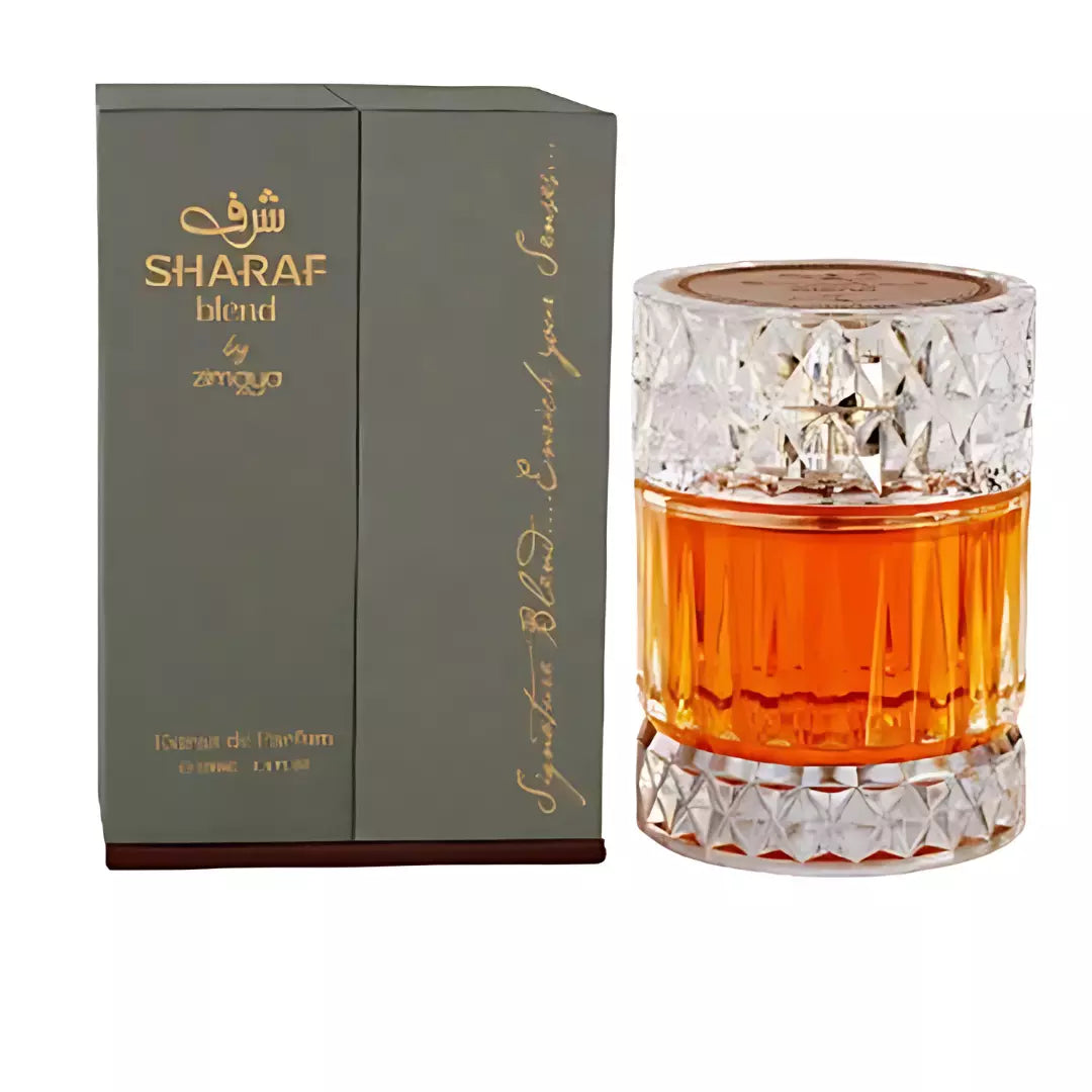 Zimaya Sharaf Blend Extrait De Parfum 100ml is a captivating fragrance that incorporates the essence of fine cognac, infusing it with a natural caramel hue.
