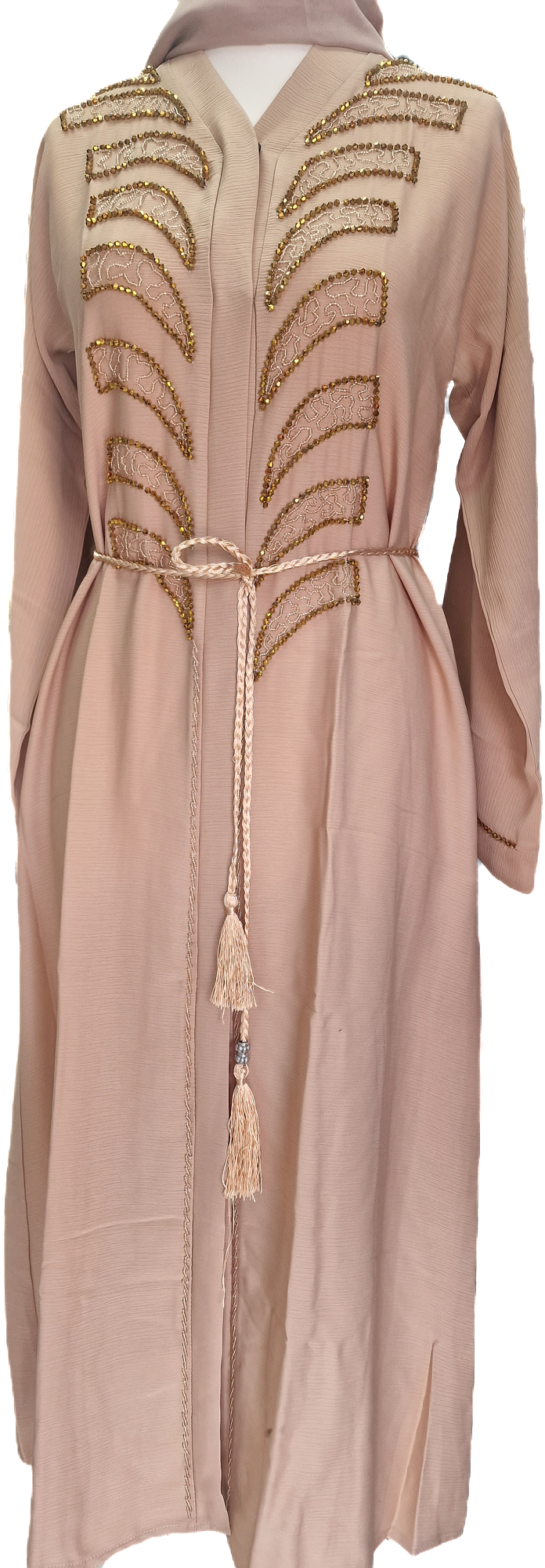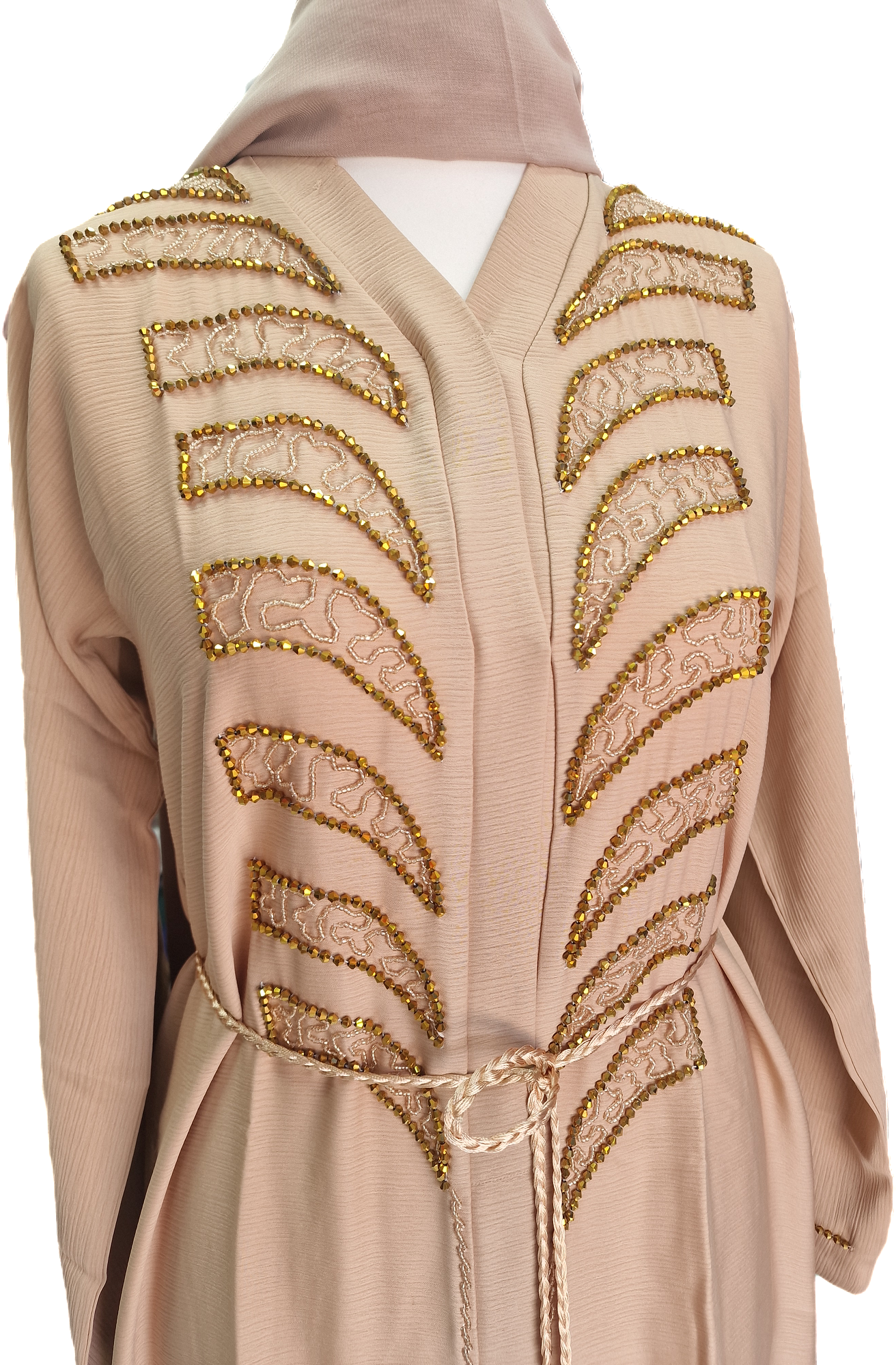 Abaya comes with matching hijab and belt for a coordinated look, Get this modest abaya dress for special occasions like Eid