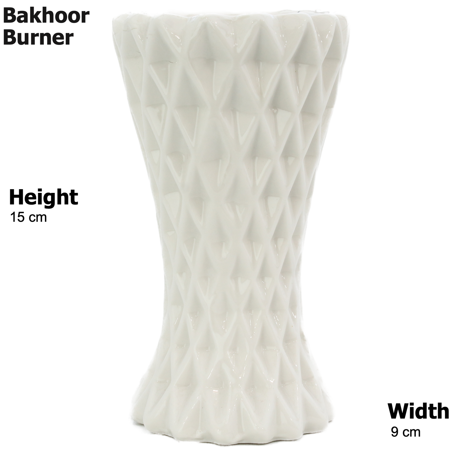 - DIMENSIONS - The Bakhoor Burner is 15.5cm height, 9cm width and 9cm depth.