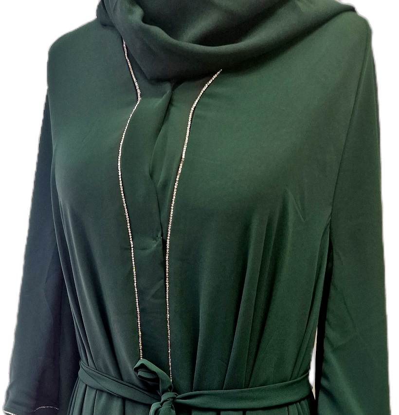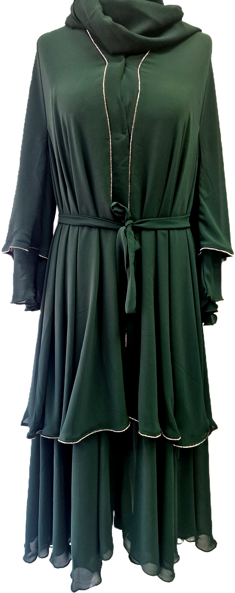 Flowy Forest Green 2-Tiered Abaya with Gold Trimming