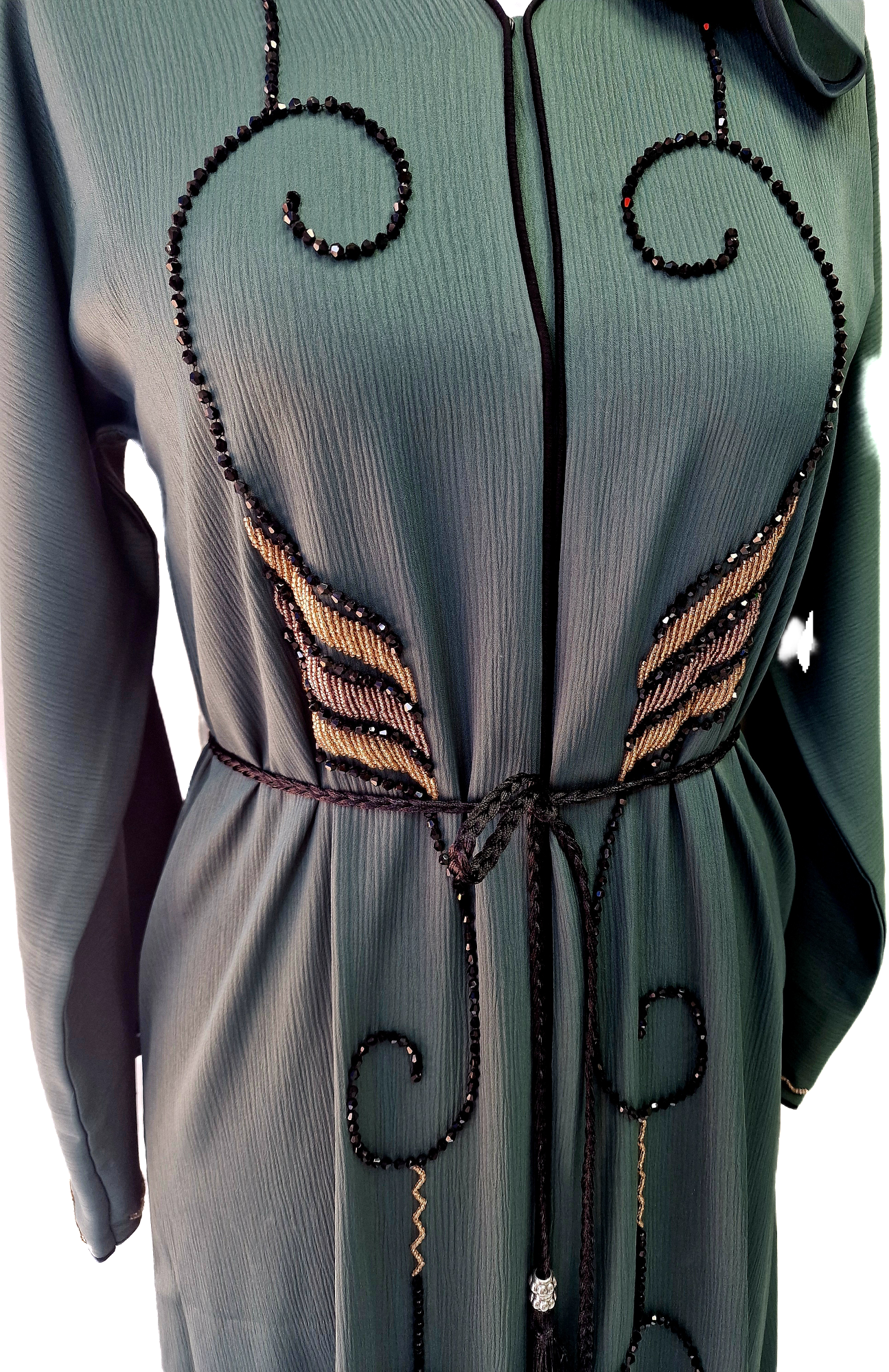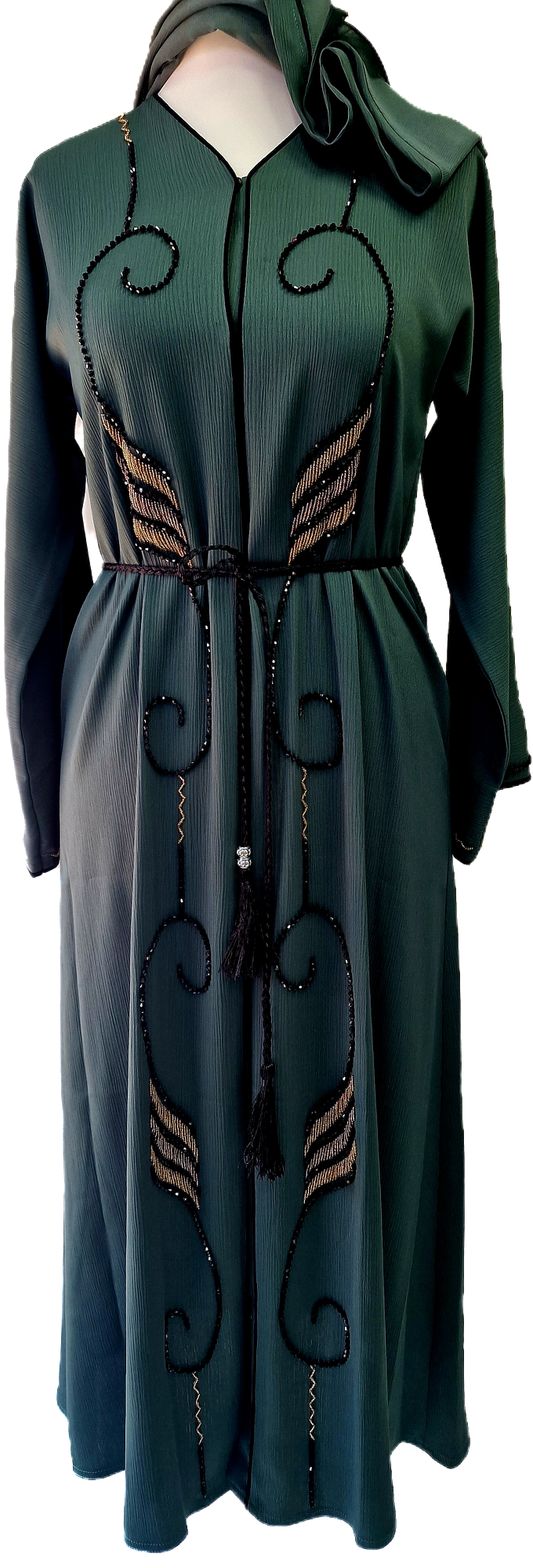 Green Abaya with Gold and Black Embellishments