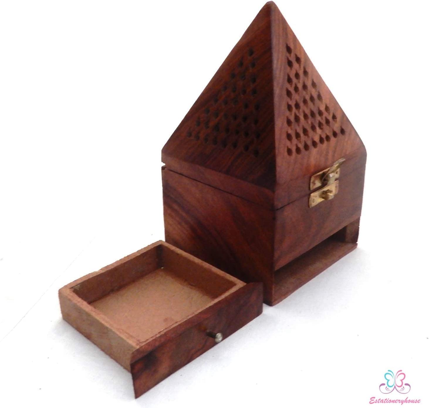 Arabic Bakhoor Burner / Wooden Bakhoor / Incense Oud Mabkhara/ Wooden House Incense Burner with drawer / Mabkhara/ Temple Incense Cone Burner