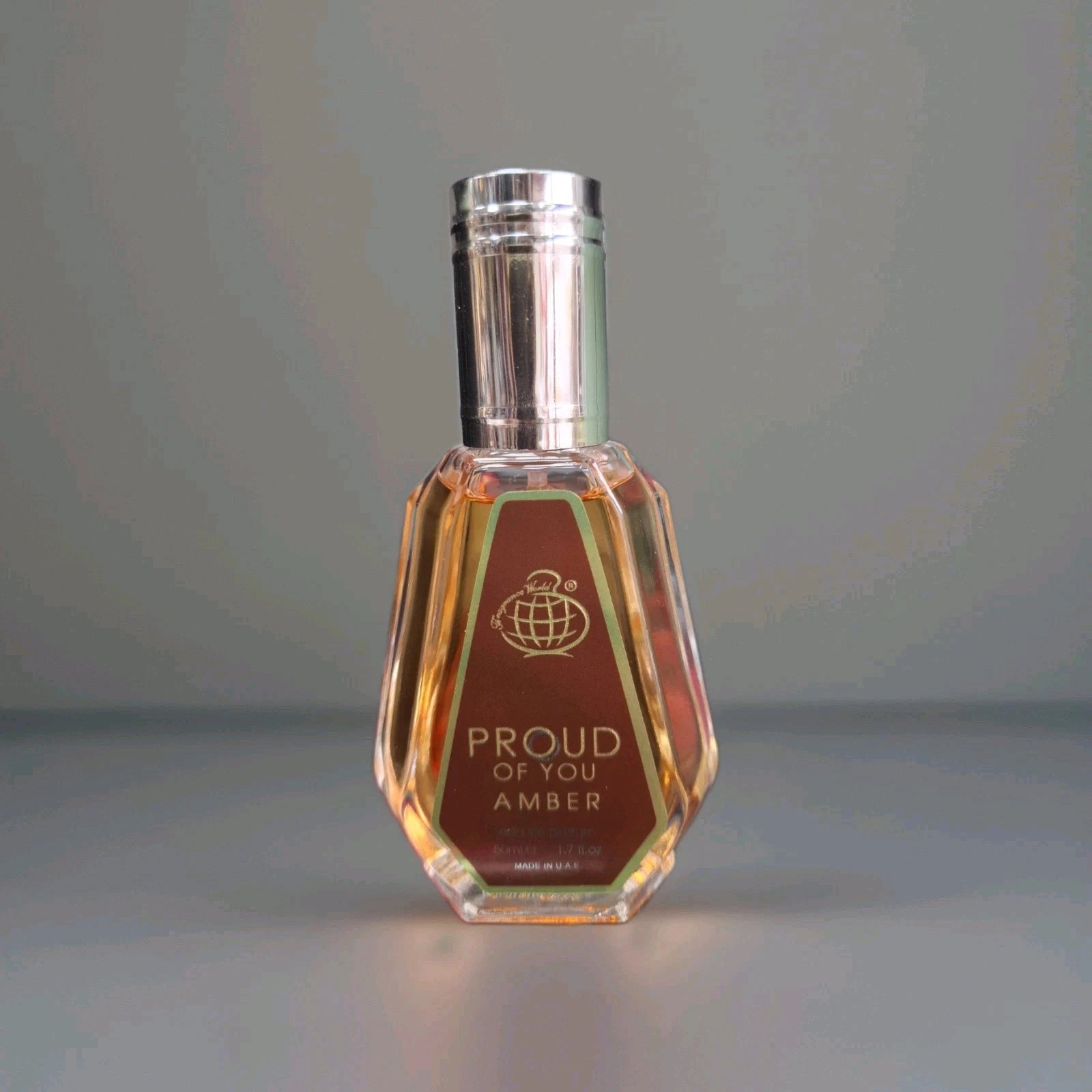 Proud Of You Amber by Fragrance World comes in a 50ml Eau de Parfum. It is designed for both men and women. If you enjoy warm and comforting scents, this perfume is absolutely for you. This mini Arabic fragrance is for anyone who wants to feel confident and elegant without an overpowering presence.