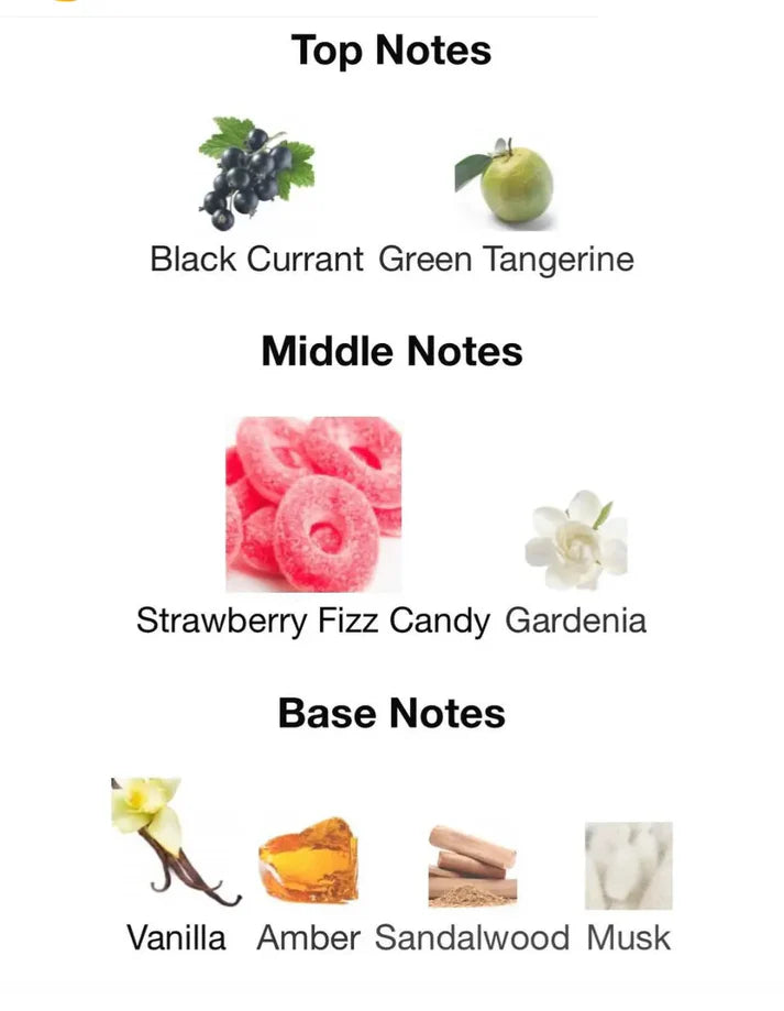 - Top Notes: A burst of sweet, fruity candy notes that immediately brighten your mood.